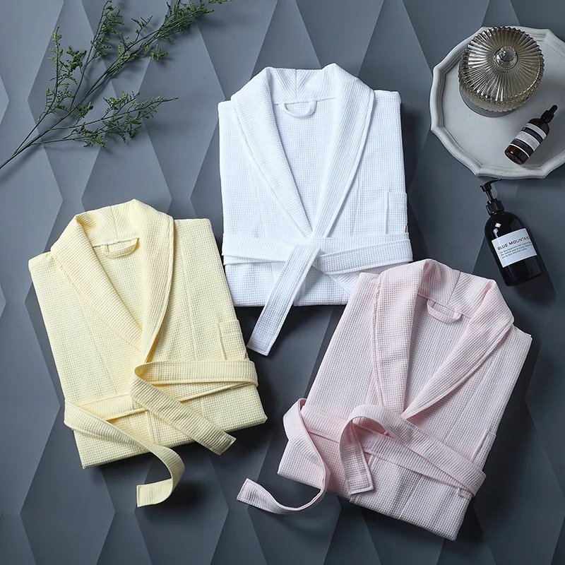 Peignoirs d'été blancs en tissu gaufré pour hommes et femmes, nouvelle collection